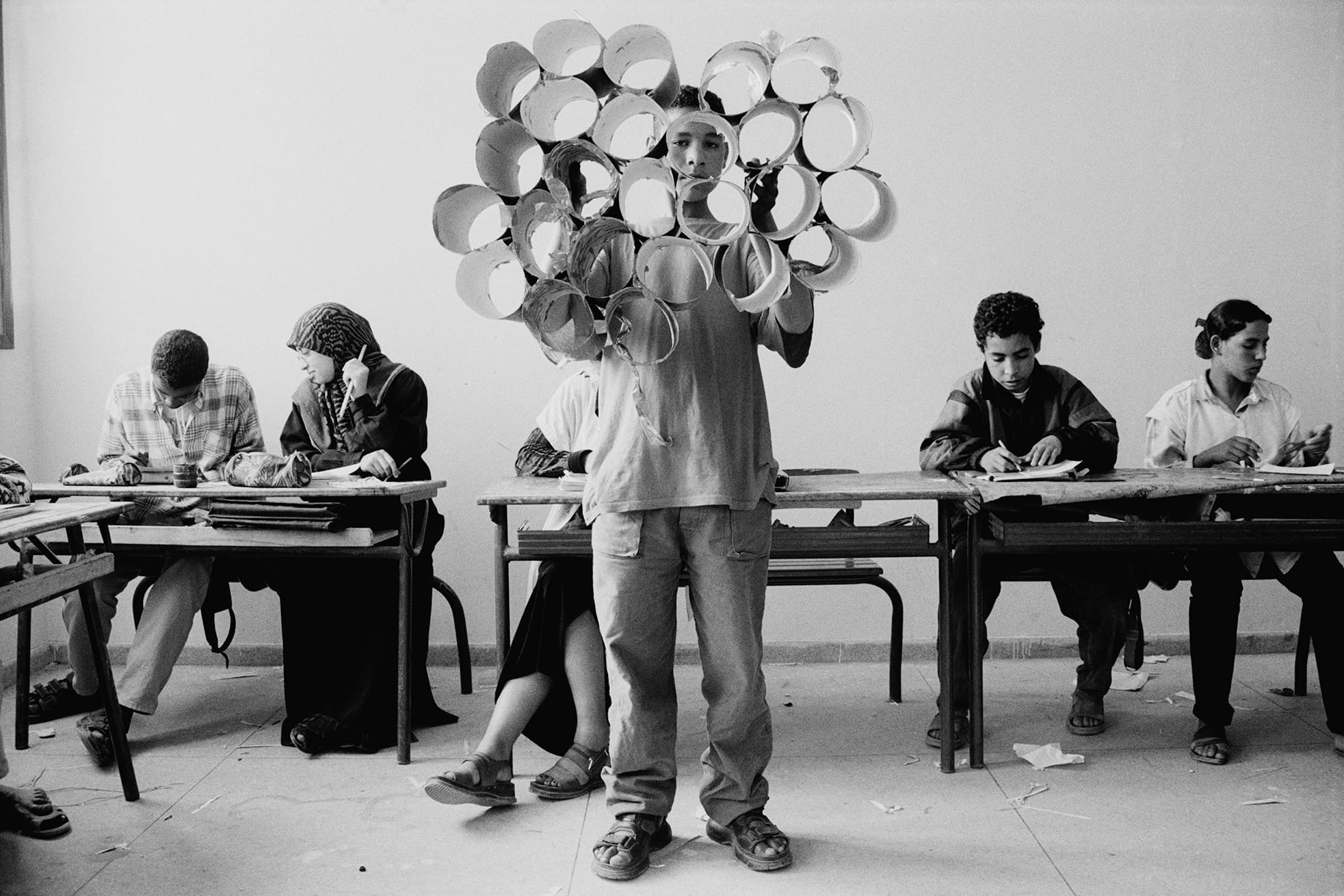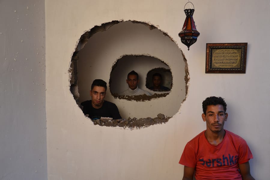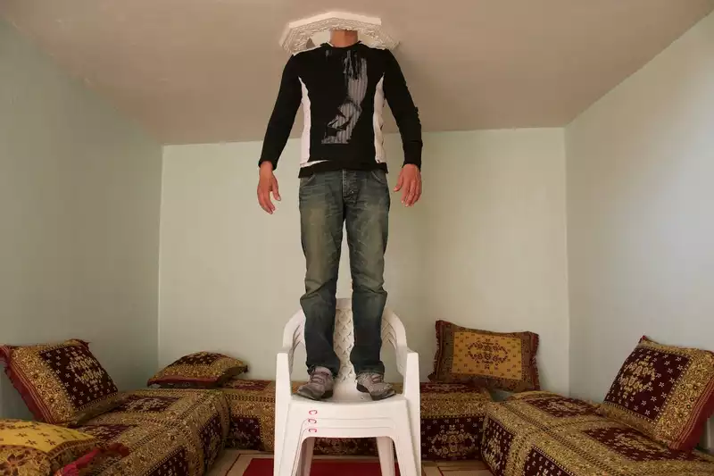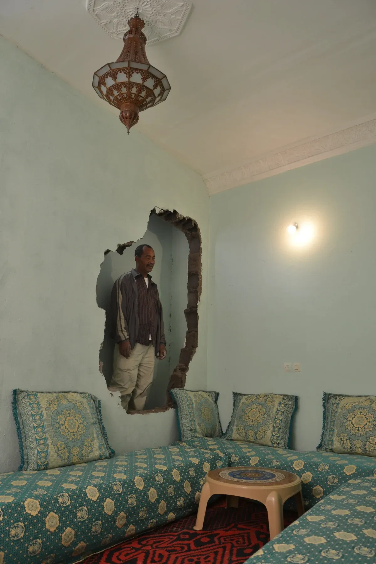 One of his best-known works is The Hole (2005). He asked families in the old city of Marrakech if he could break holes in their walls and ceilings, and photograph them in the damaged rooms. “Many people think it’s Photoshop, but everything you see is real. We even made a behind-the-scenes video,” he says. “Photographing people inside holes is a way to show how stuck they are in life.”
