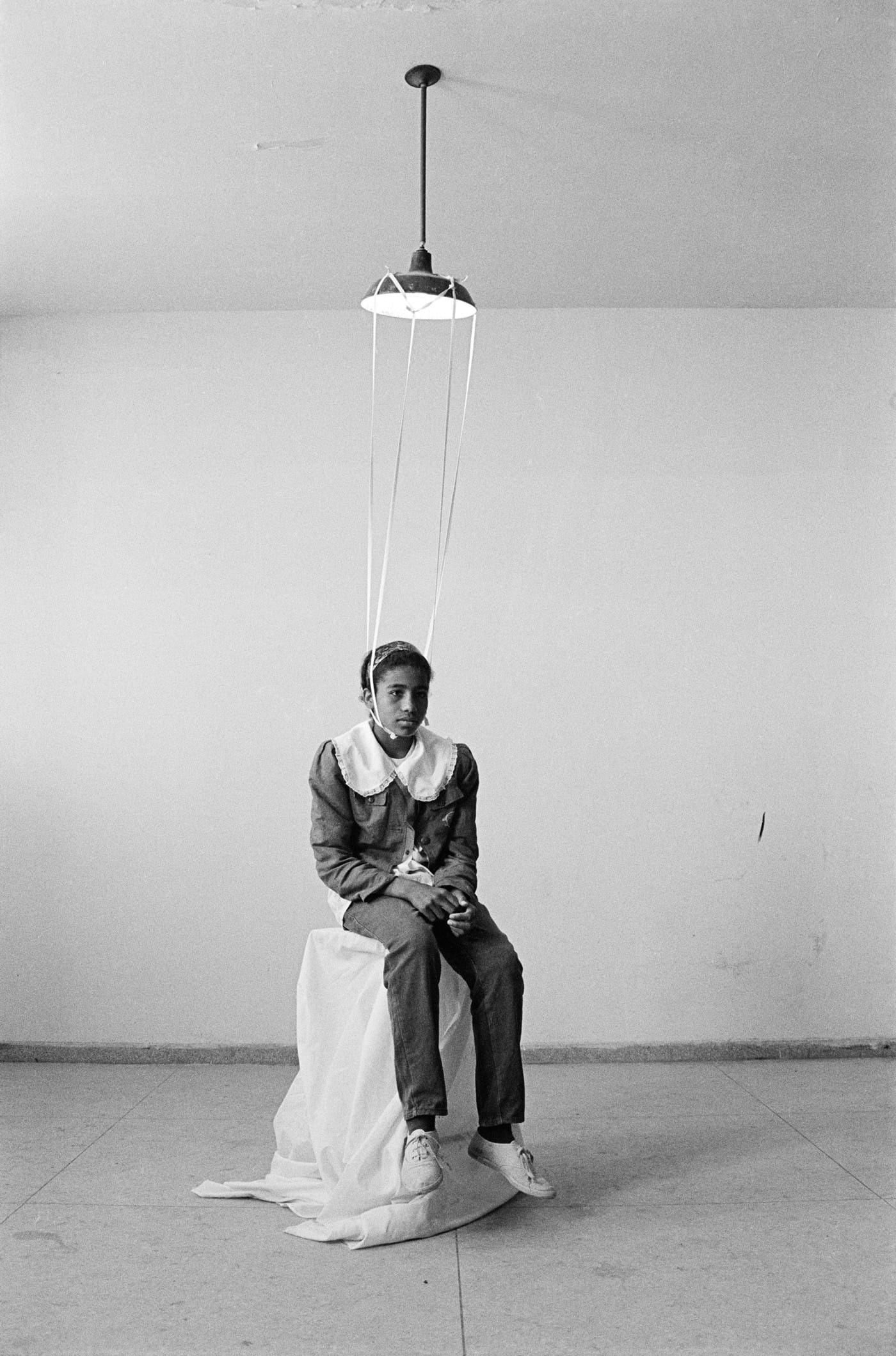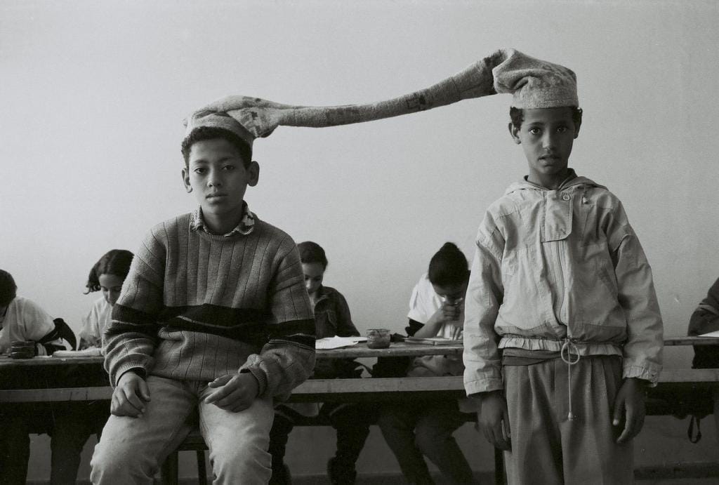 While teaching, he also created art. His students became part of his work. In La Salle de Classe (The Classroom), he photographed them in unusual positionsstanding on tables, lying on the floor. “That was my way to look critically at my society,” he explains. “It was my reaction to a society that refuses to question its past, its traditions, and its values.”