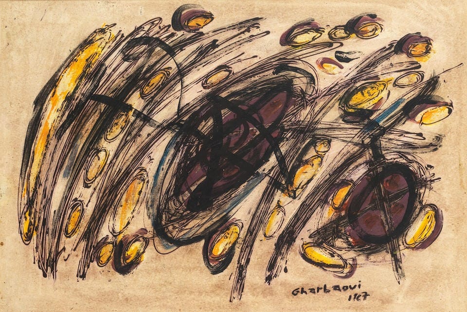 In 1952, Gharbaoui moved to Paris to study at the École des Beaux-Arts. He later studied in Rome and spent time in Amsterdam and Japan. He met famous poets, painters, and critics and started to find his own voice in painting.