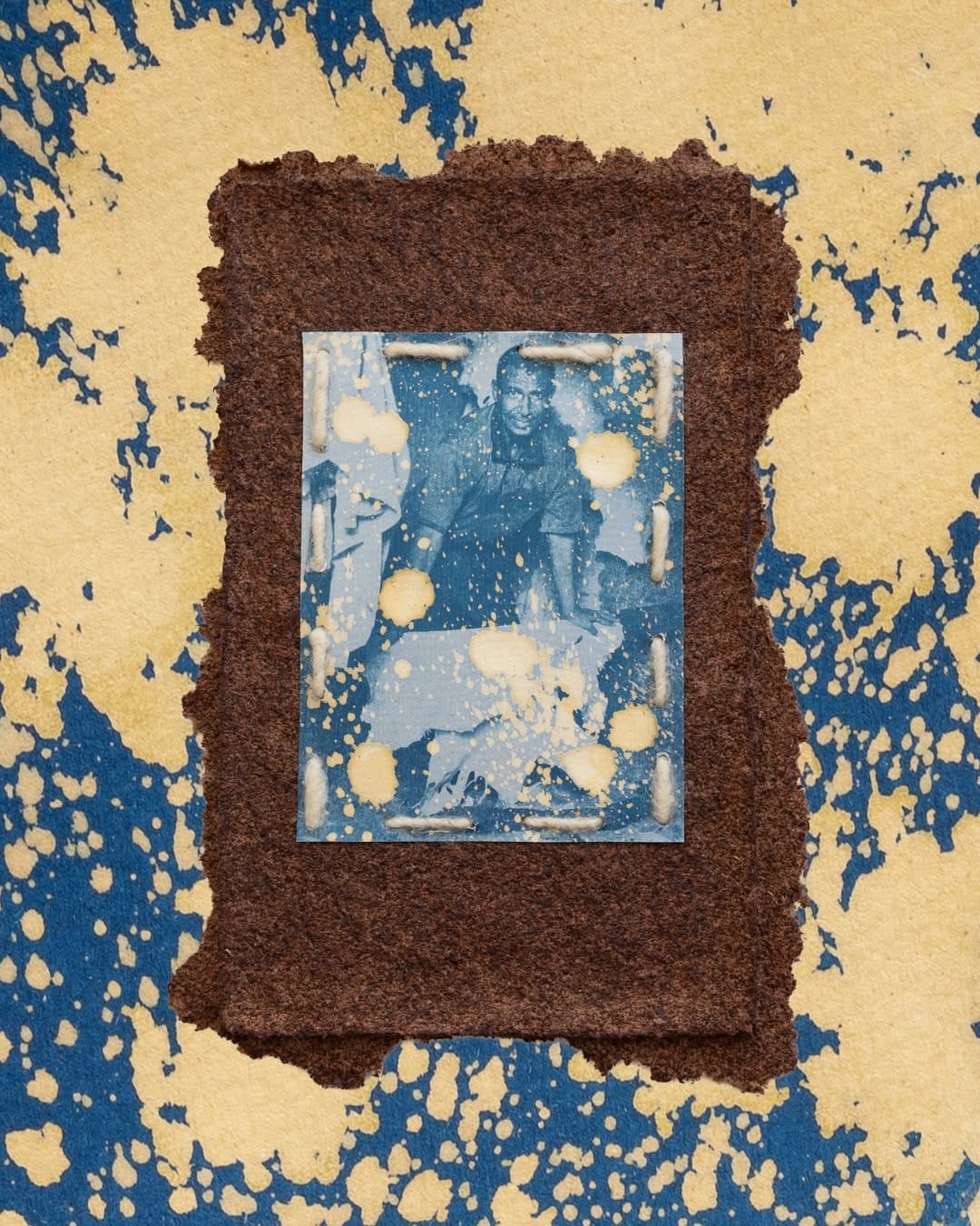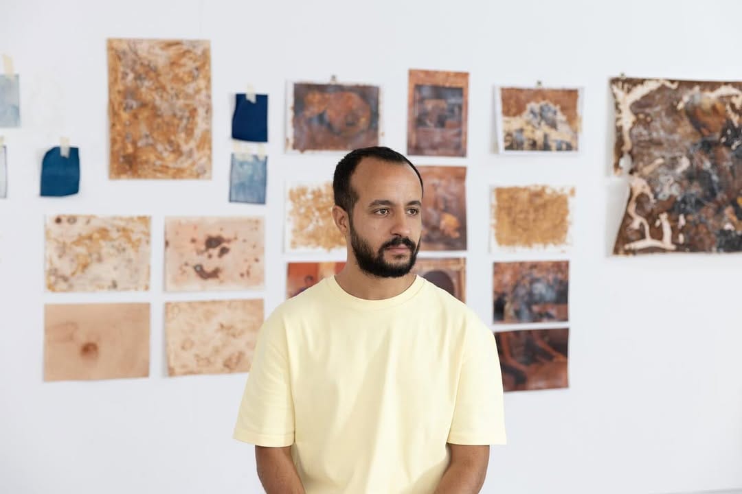 His photographic series on the tannery earned him the Prix Mustaqbel in 2024, awarded to emerging photographic talents. But Tabit’s practice goes beyond photography alone. During a residency at the Montresso Art Foundation, he experimented with new forms and materials. He created handmade paper from substances derived from the tanning process itself. On this fragile surface, he placed cyanotype portraits of the tanners, images he then partially erased with acid, a chemical that has replaced the natural methods once used.